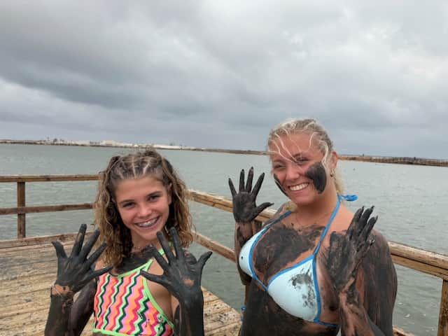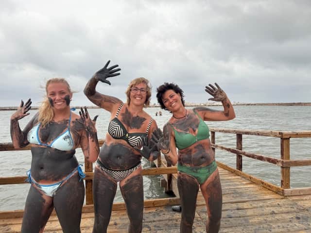 - Jezelf insmeren met modder, deze zijn beschikbaar in grote potten op het platform op het water.